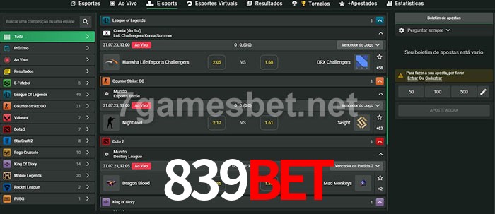 O 839bet oferece uma grande seleção de opções de apostas em e-sports com probabilidades competitivas
